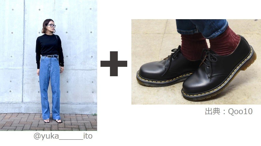 こなれ感を出せるメンズシューズ。下半身にボリュームをもたせる最近人気のコーデに◎メガネと合わせてレトロシックな雰囲気を出すのも良い。