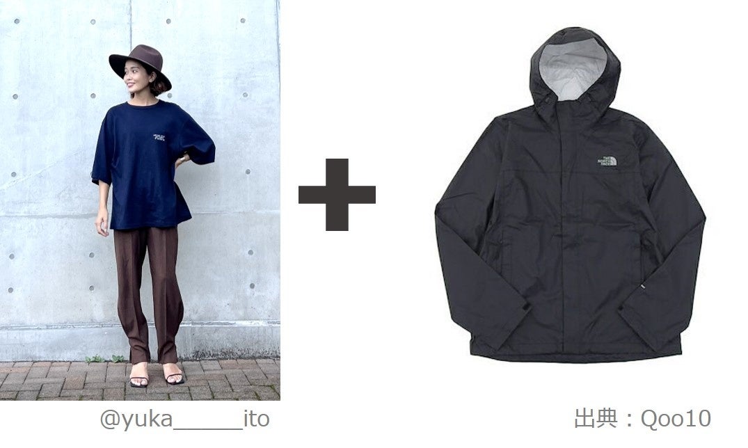 アスレジャーアイテムのマウンテンパーカーを取り入れることで、こなれ感を演出できる。肩にかけたり、巻いたり、スカートと合わせるのも◎