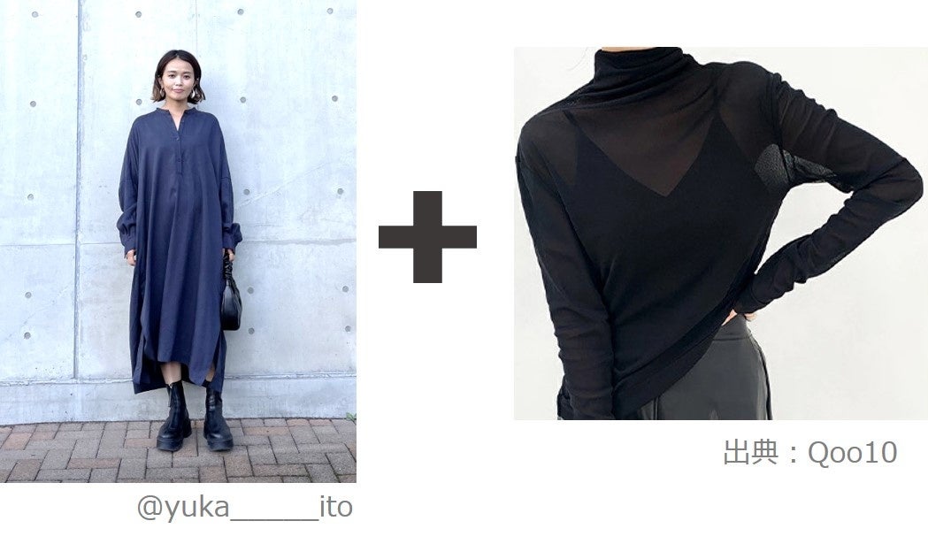 シアーハイネックシャツは、シンプルなワンピースなどに重ねて着ると女性らしさがプラスできる。ハイネックはスタイルを良く見せる効果も!