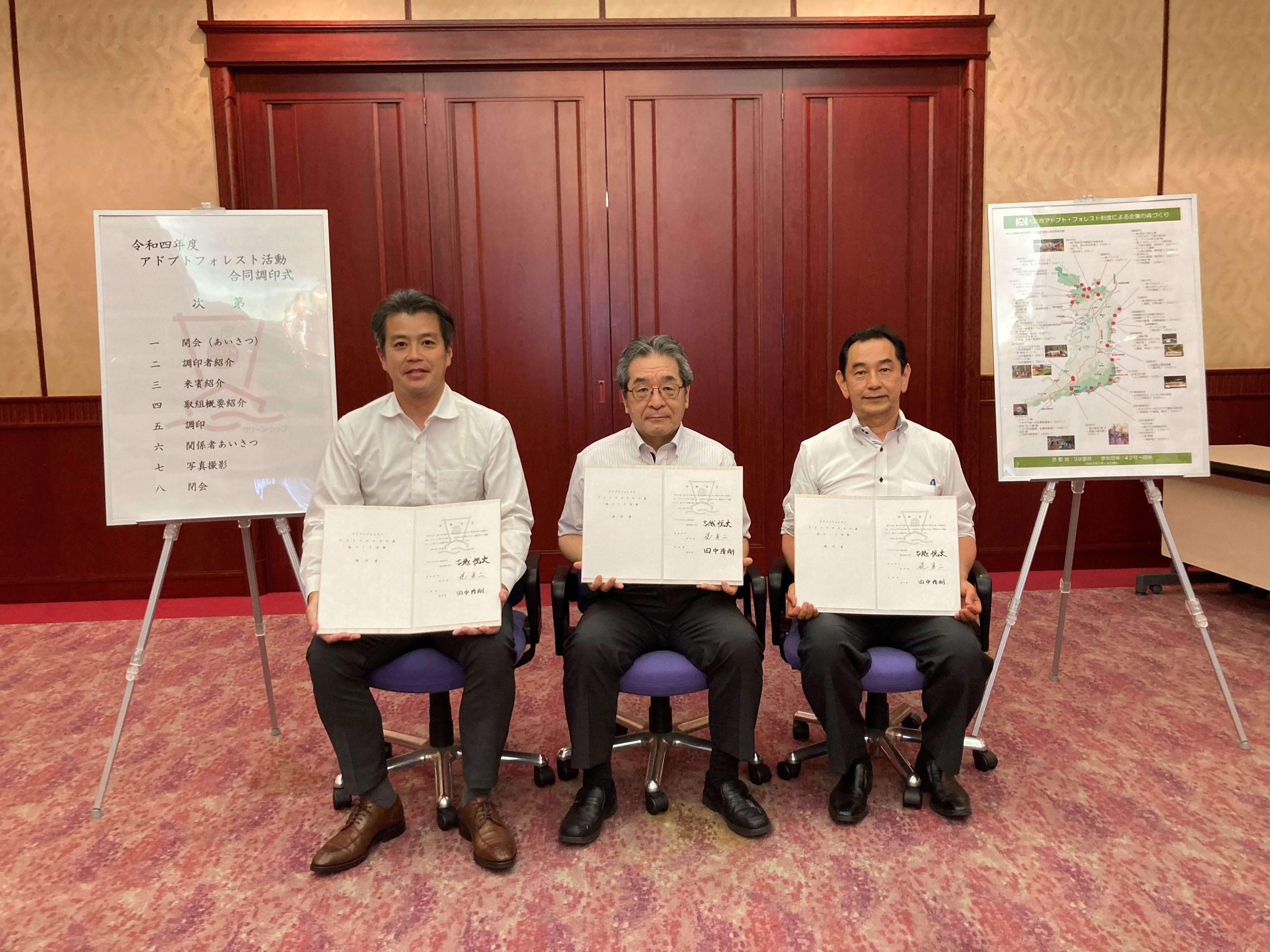 大阪府では、地域と共同で森づくりを進めることを目的に、2022年7月1日現在、42の団体と企業が、アドプトフォレストを活用して、健全な森林を次世代に引き継ぐため、森づくり活動に取り組んでいます。この度、本調印式を経て、当社を含む5社が、このアドプトフォレスト制度を活用して取り組むことを正式に表明しました。
