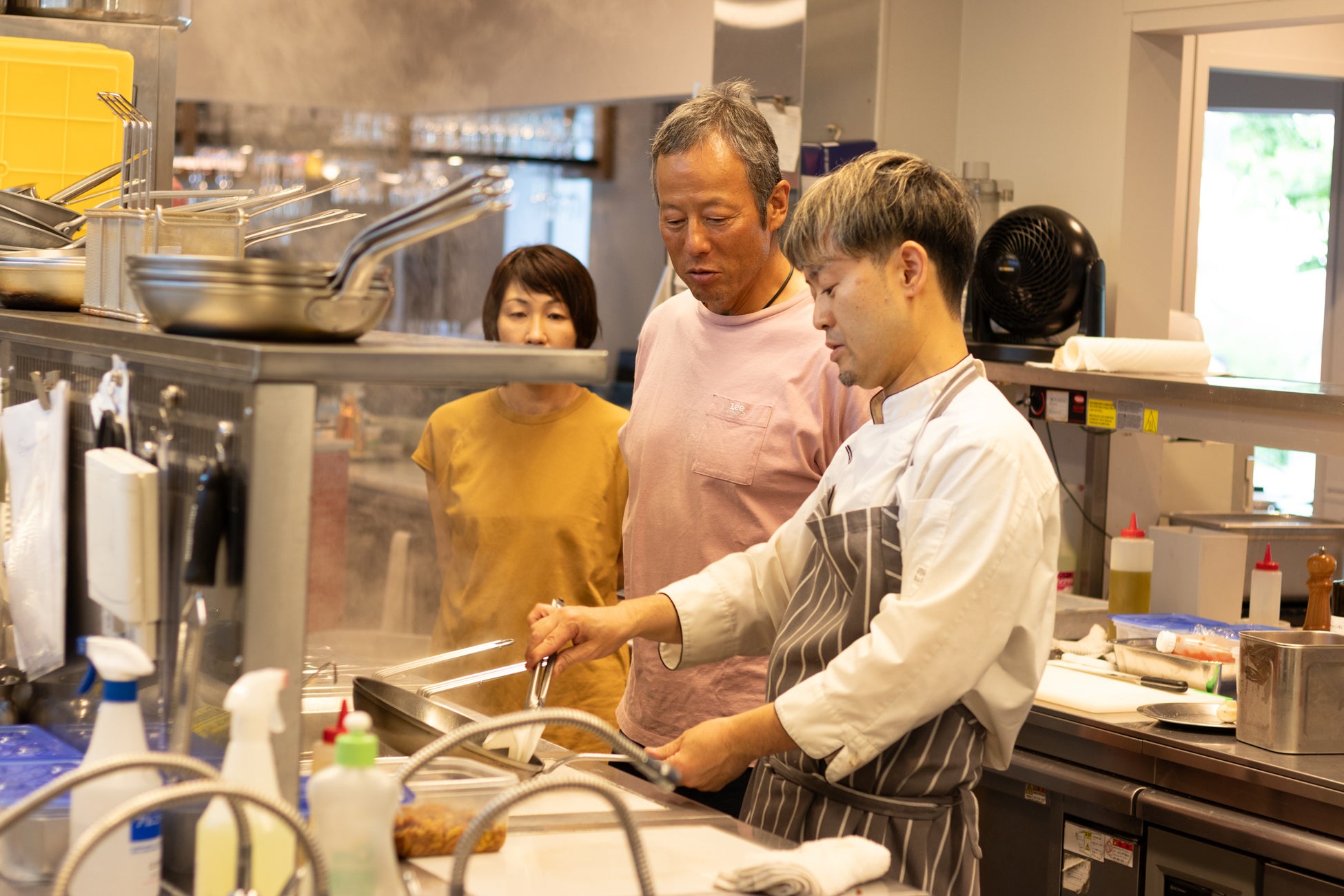 農家から届く野菜の特徴や扱い方について、直接アドバイスを受けながら、シェフ・吉本がメニューを考案。