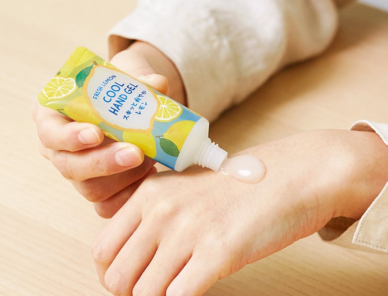 夏でも乾燥しがちな手肌にうれしい、涼しくうるおすソルベタイプのハンドジェル。肌をうるおして整えるフルーツエキス*と植物エキスに、ひんやり気持ちよい清涼成分を配合。爽やかなレモンの香りを楽しみながらすっきりうるおう手肌に。