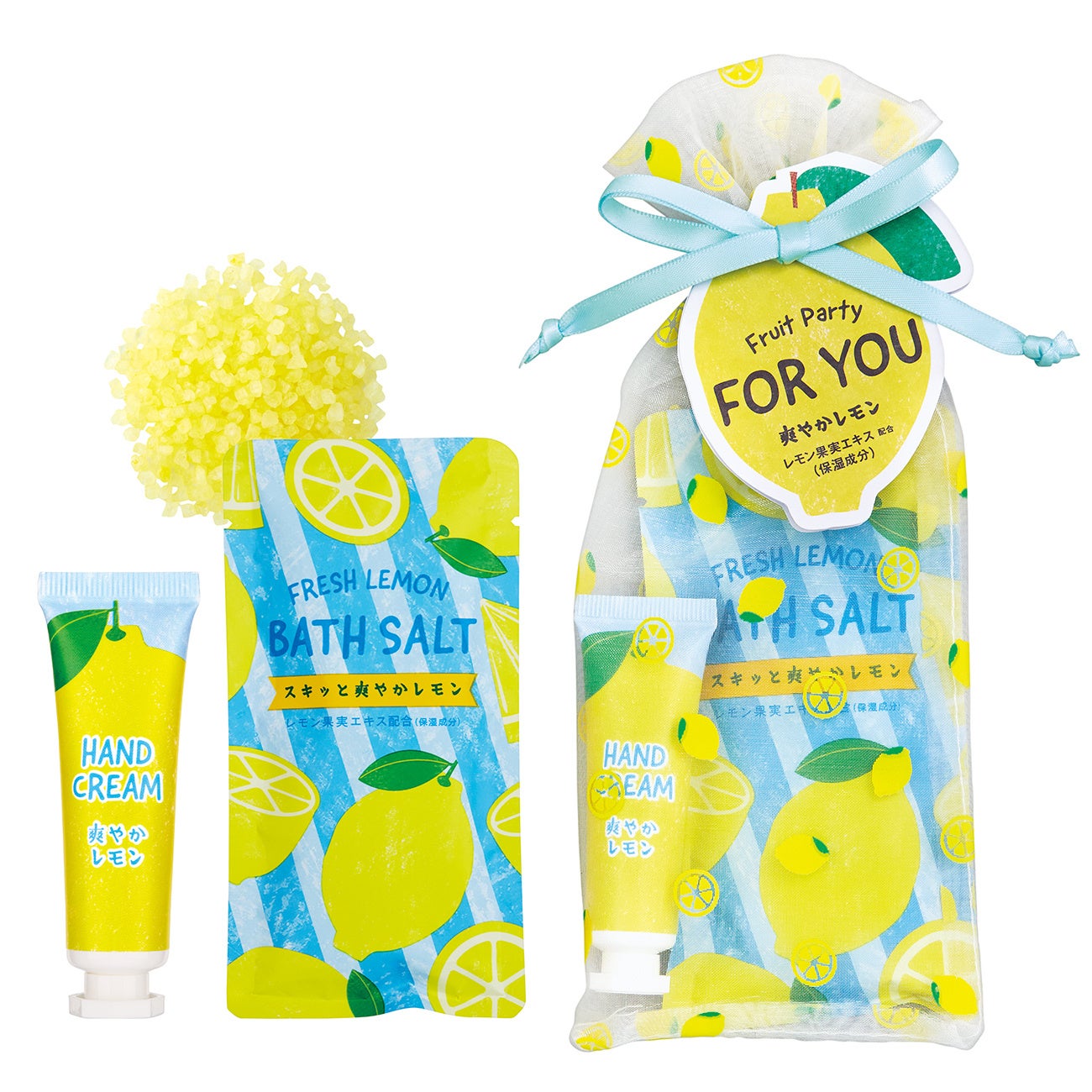 今年はレモン柄のオーガンジーバッグにハンドクリームとバスソルトが入った「プチギフト」が新登場。季節を感じさせる爽やかギフトです。