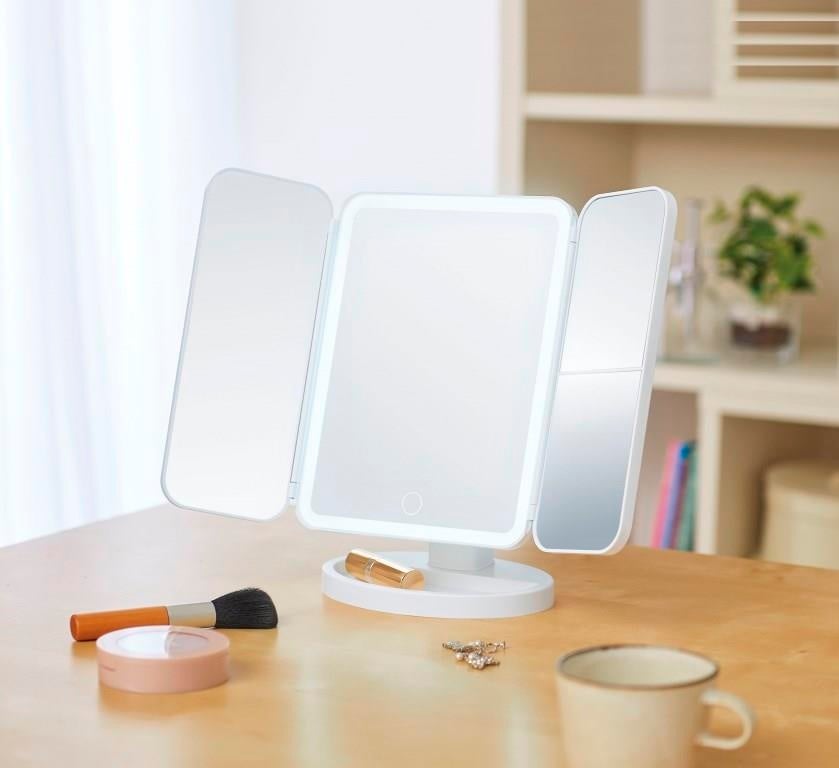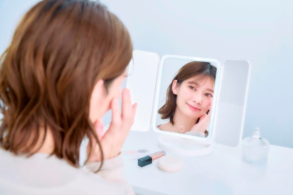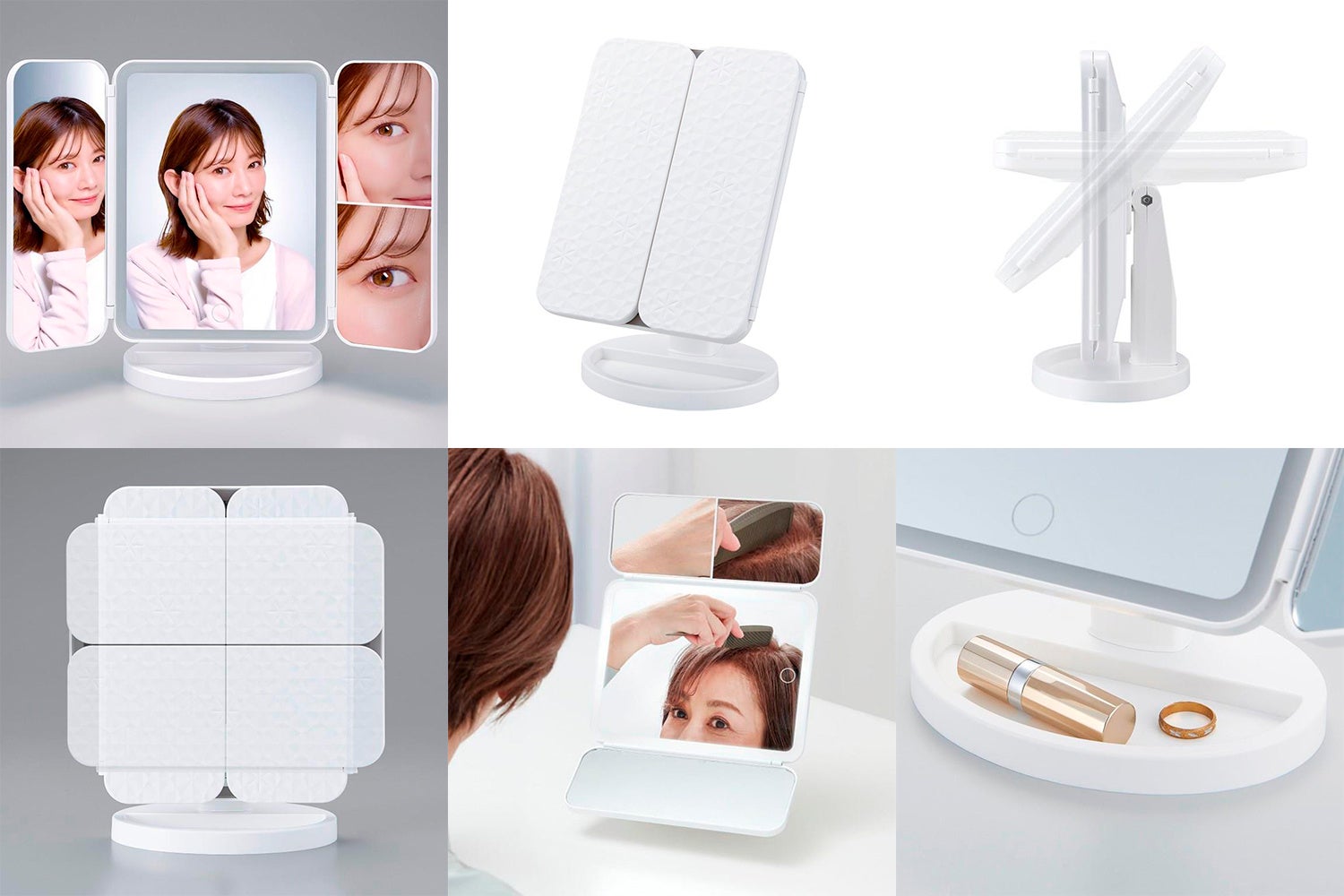 上下左右ぬかりなく!気になる目元も毛穴も拡大鏡で見逃さない!「回転式LED三面ミラー」を3月3日より発売