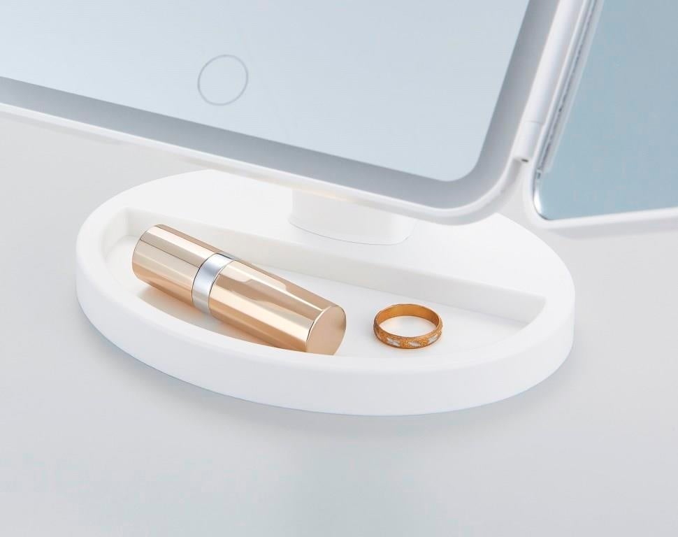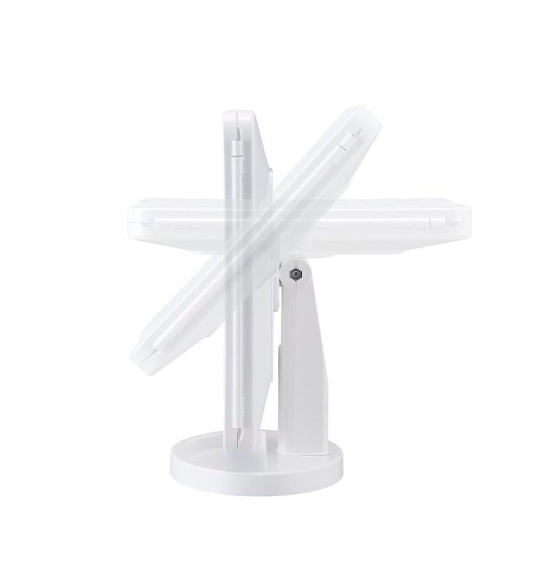 頭頂部の白髪チェックにも!回転式スタンドで縦向き、横向き、奥行きを変えて見たい角度に調節可能!台座は口紅など小物が置けて便利!