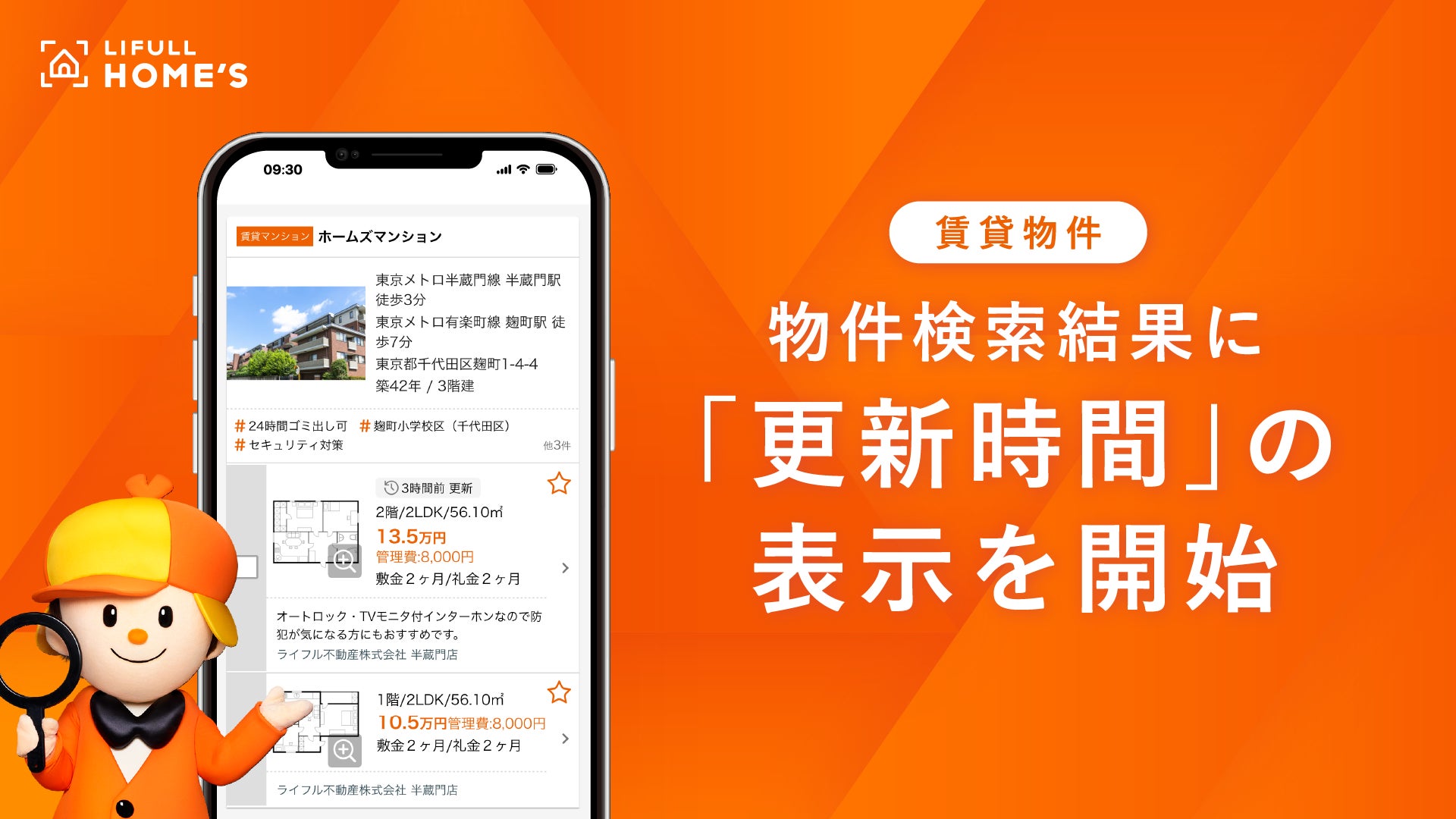 LIFULL HOME'S、人気物件が埋まりやすい引越しシーズンに向けて物件検索結果に「更新時間」の表示を開始