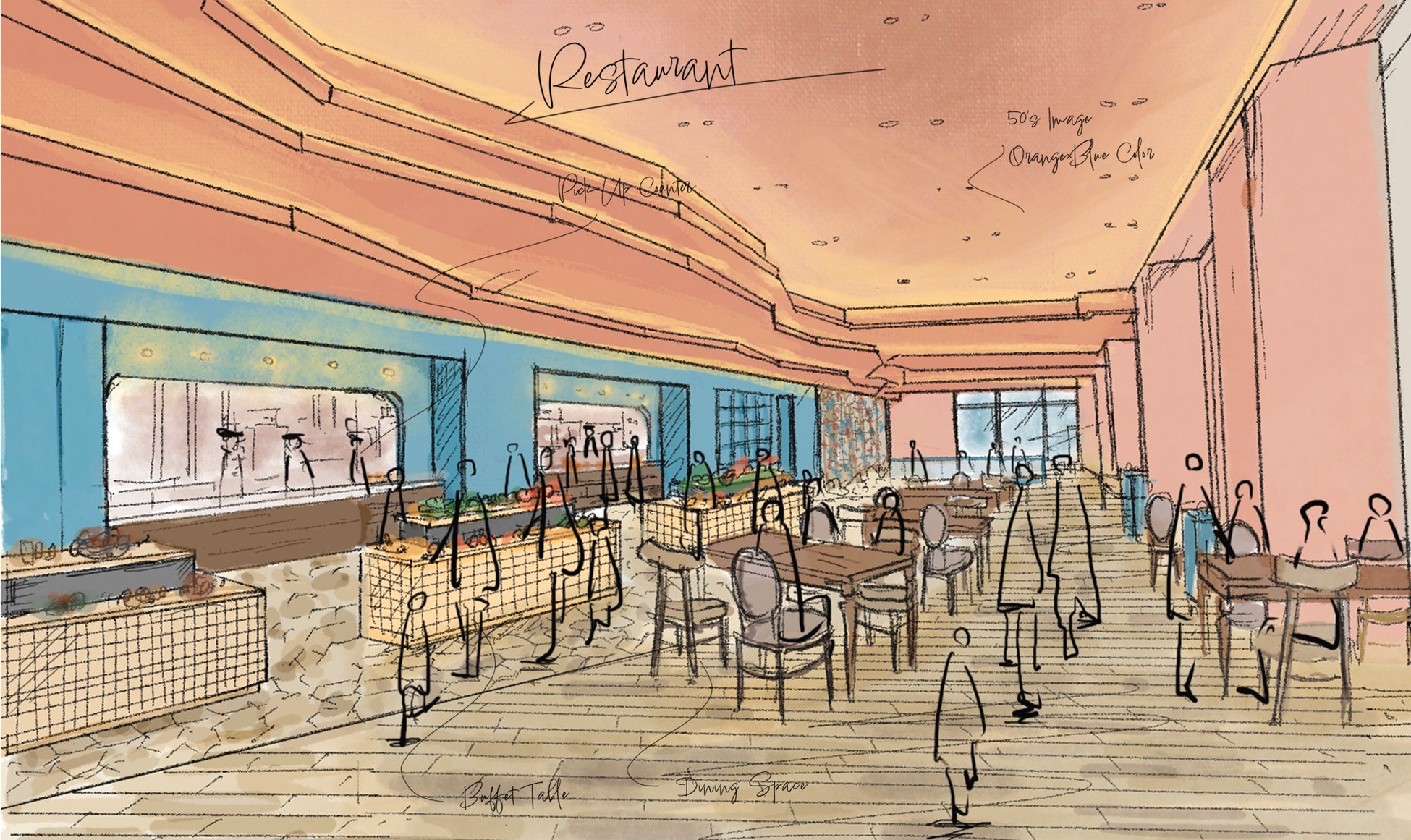 経済や文化が大きく発展した1950年代のアメリカ、中でも1955年は世界初のディズニーランドが誕生した年です。当ホテルは「OLDIES GOODIES」、「古き良き」をコンセプトに、館内のデザインは当時のアメリカの世界観をモチーフに表現します。テーマパークの1つのエリアにいるかのように、テーマパークを出た後も余韻と非日常的な世界観に浸りながら滞在できるのが特徴です。また、Goodiesには魅力的なもの、楽しませるものといった意味もあり、世界観にしっかりと没入できるよう、テーマパーク旅を便利で快適にするホテルサービスを追求します。