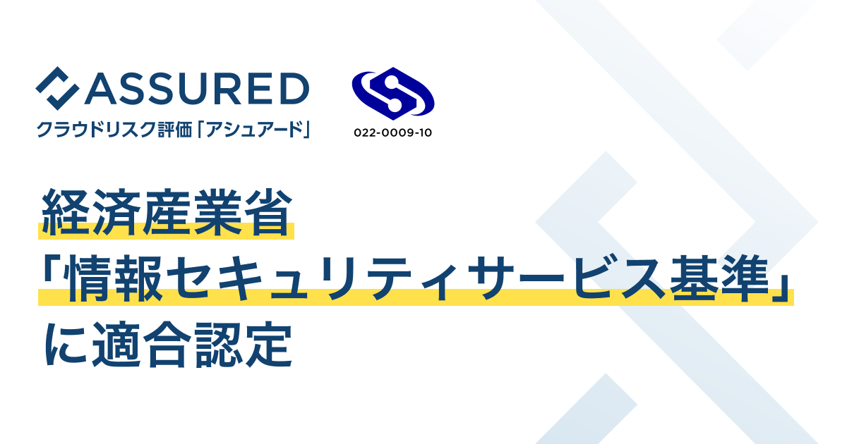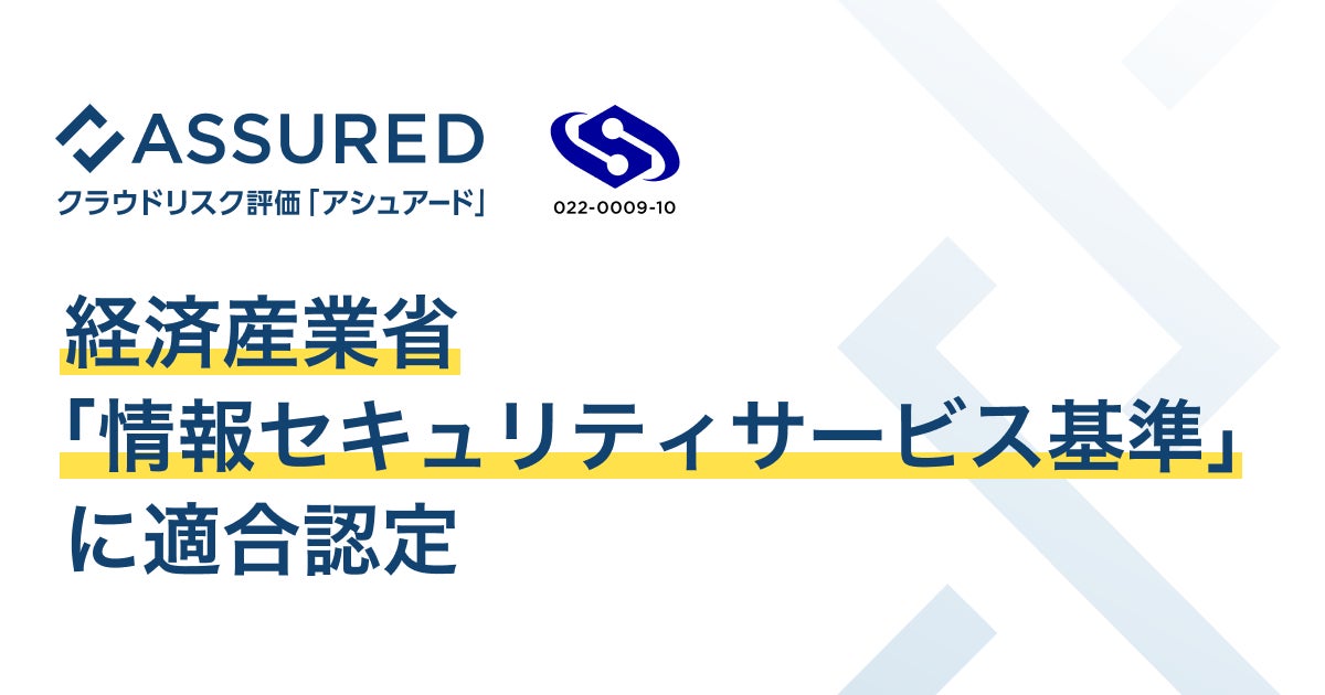 クラウドリスク評価「Assured」が、経済産業省「情報セキュリティサービス基準」に適合認定