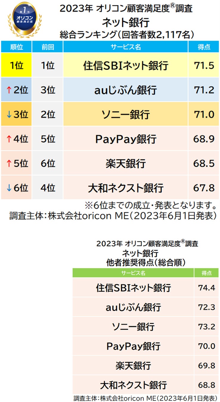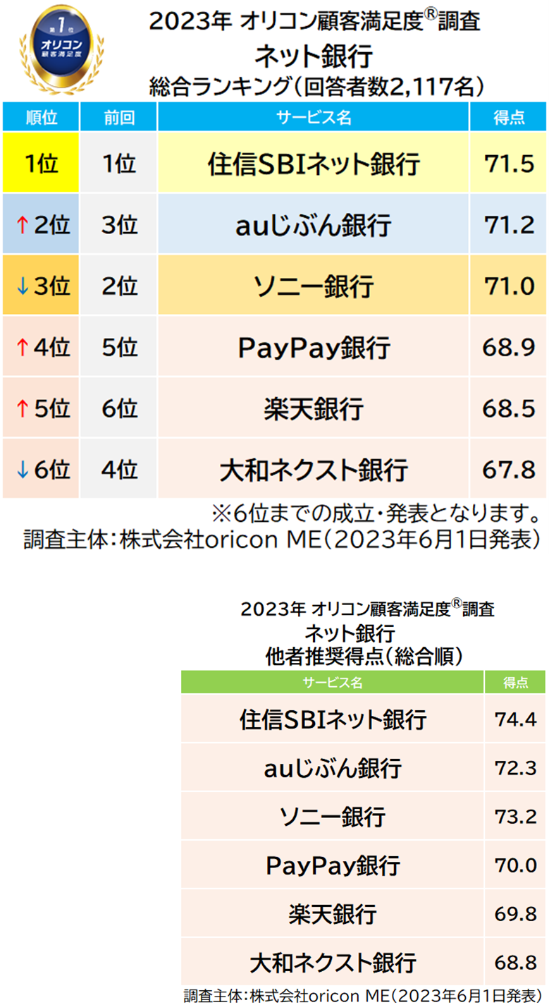 《2023年 オリコン顧客満足度®調査 ネットバンキング 総合1位》