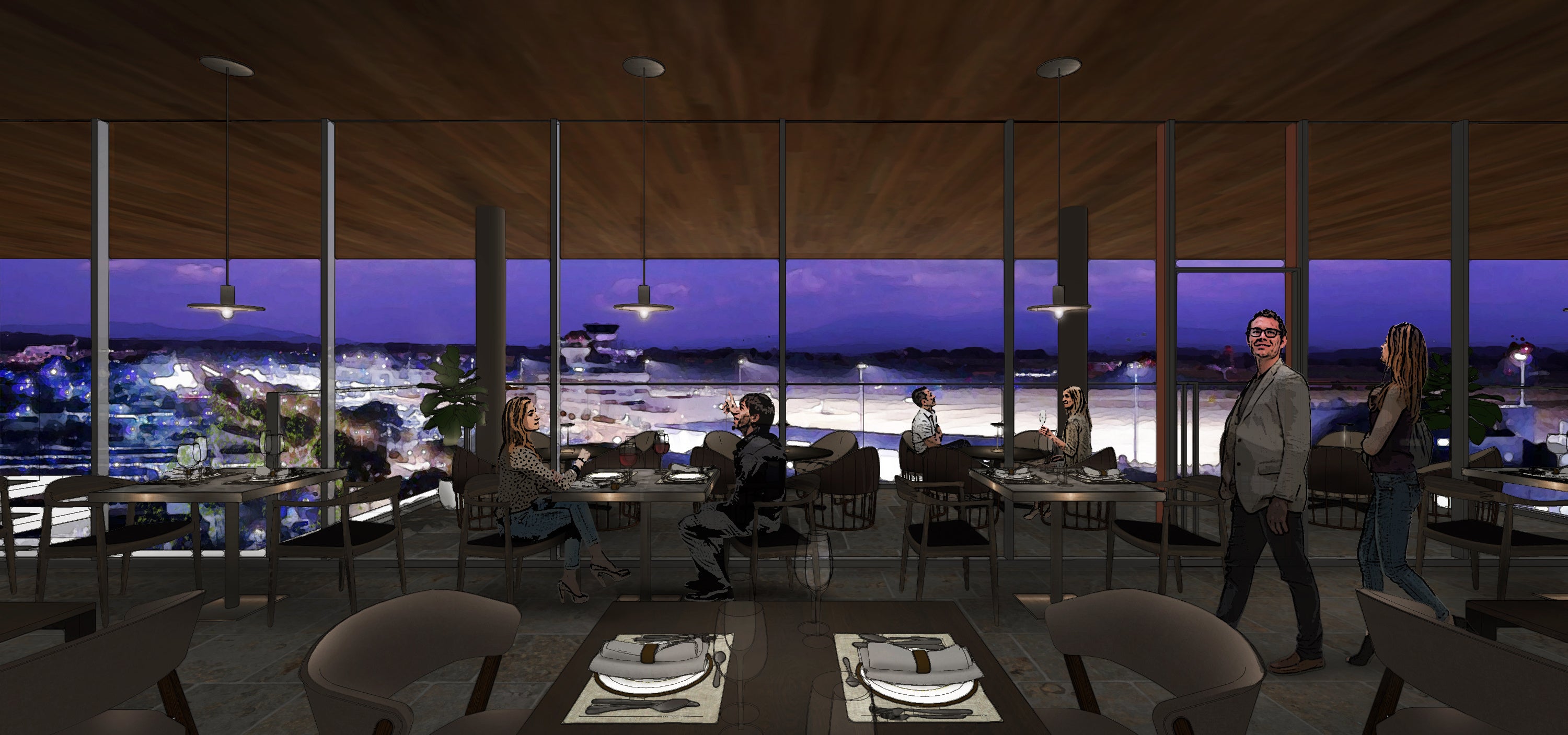 現在の計画では、標準客室面積約24㎡の全154室で、本館と別館の2棟構成を予定しております。上層階の6階にレストラン、5階に展望浴場を設け、鹿児島空港や霧島連山、桜島のパノラマビューをご宿泊の皆様にお楽しみいただけるホテルとして計画しております。
