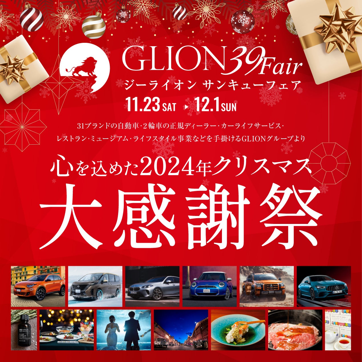 GLIONグループが、11月23日(土)〜12月1日(日)の9日間を通して日頃からご愛顧いただいているお客様に感謝の気持ちを込めた2024年クリスマス大感謝祭「GLION 39 Fair」。