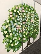 スーパーやコンビニで馴染みのあるお菓子がどのように作られているのかは、小学生の好奇心と相性が良く、クイズの回答には真剣に悩み、用意した工場見学動画には夢中になって見入る児童が多くいました。参加した児童が付箋で自由にメッセージを書いて貼った「学びの木」には、「あめが1分に1,000こできるのが知らなかったのですごいと思いました」などの学びへの感想や、ロゴや商品のイラストなどが貼られており、カンロの届けたい思いが実ったのを表していました。