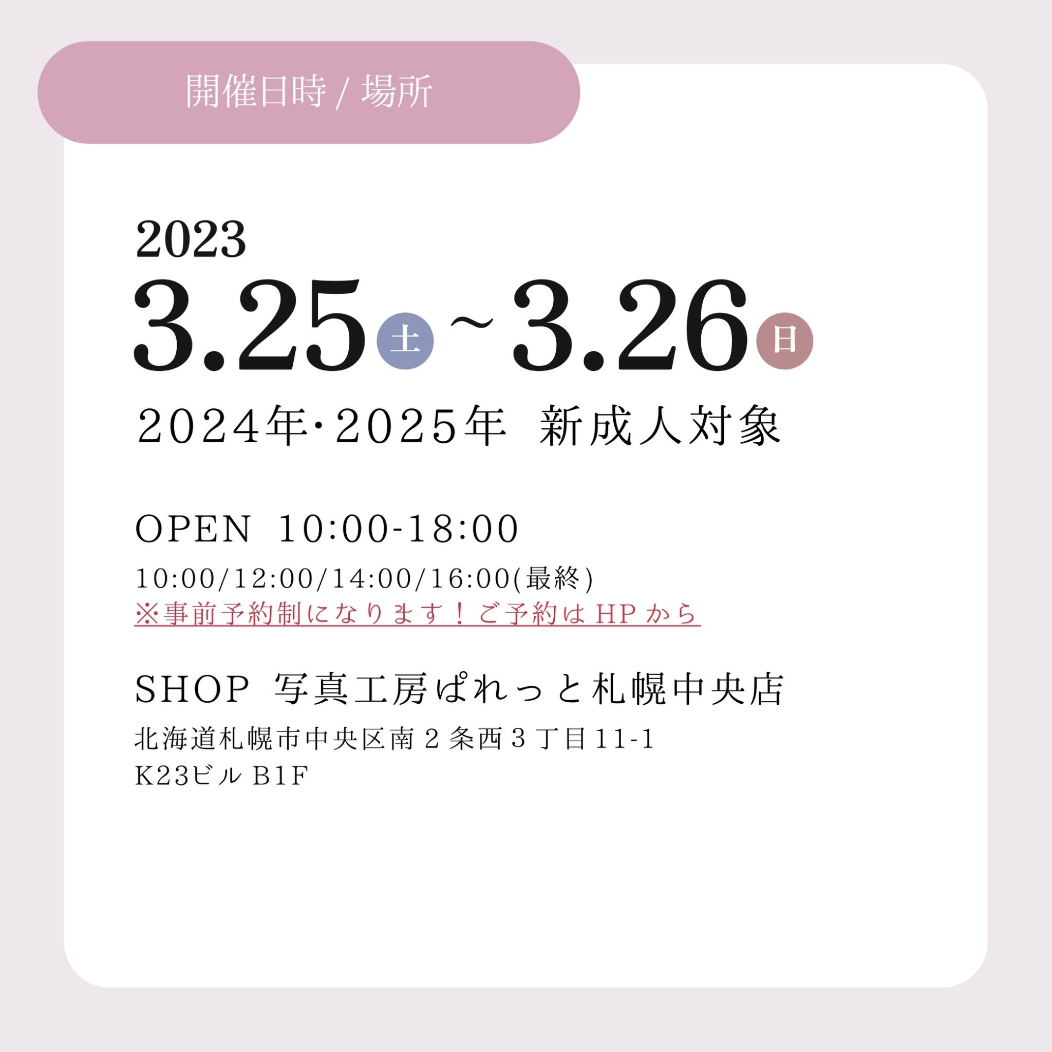 【写真工房ぱれっと札幌中央店】2024年・2025年新成人向け振袖展示会が開催決定