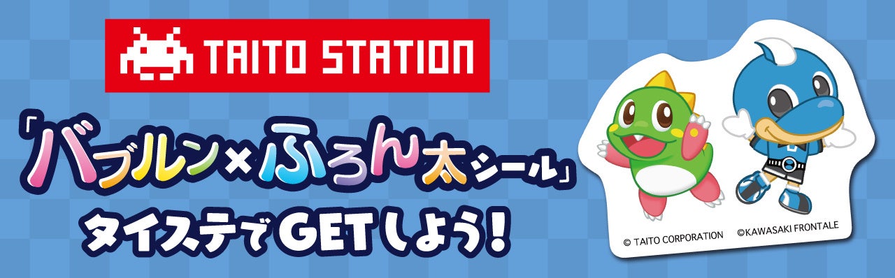 株式会社タイトー(本社:東京都新宿区、以下タイトー)が運営するアミューズメント施設「タイトーステーション」では、J1リーグ所属のプロサッカーチーム川崎フロンターレ(所在地:神奈川県川崎市)とのコラボ施策として、9月21日(土)~23日(月・祝)の期間に「溝の口店」「川崎 ラ チッタデッラ店」の2店舗にて「バブルン×フロン太コラボシール」を数量限定配布いたします。