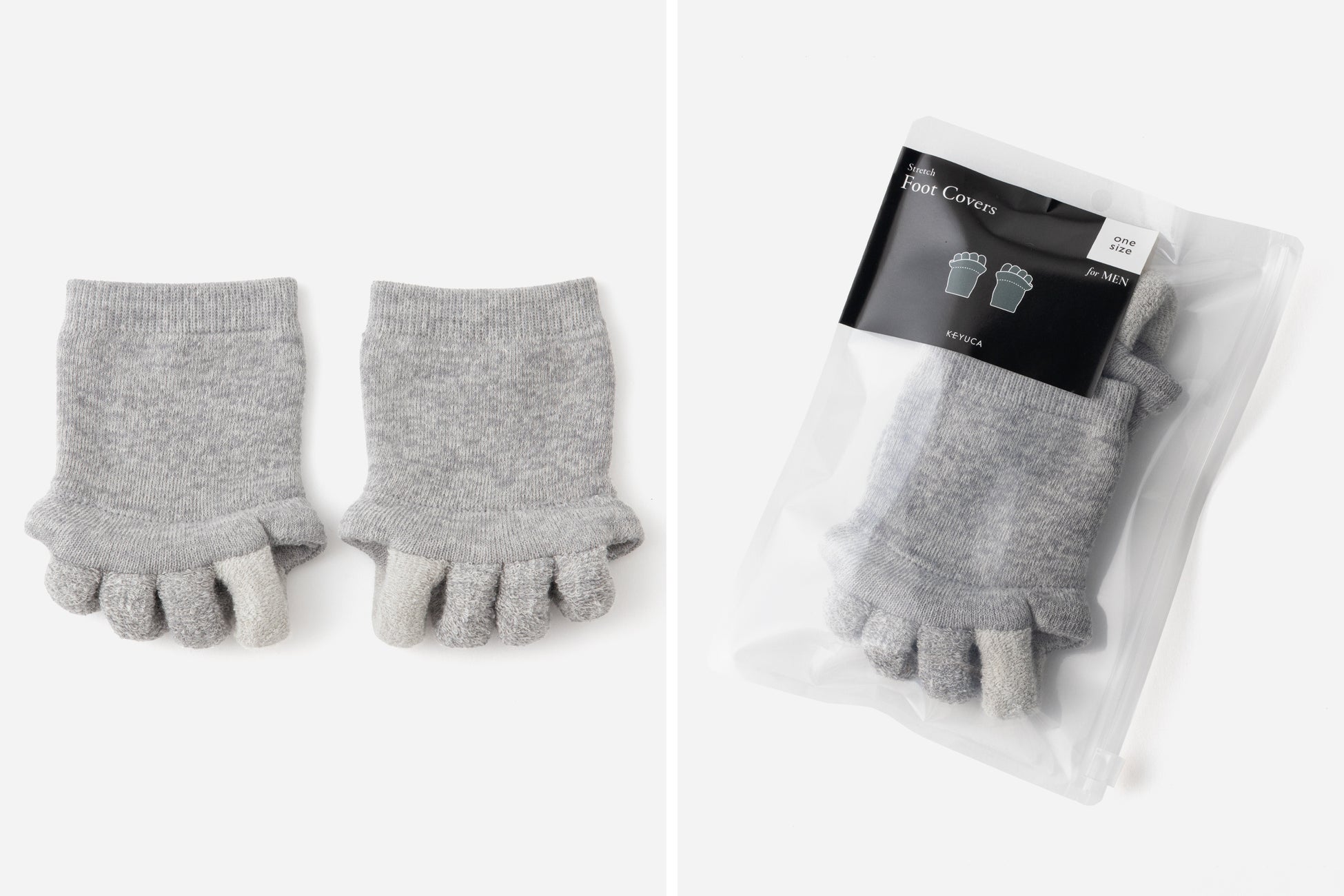 「麻混足指開放フットカバー」は、足指の間を広げてすっきりストレッチできるアイテム。お風呂上がりやリラックスタイムに"ながらケア"ができます。かかと部分がないので足のサイズを気にすることなくお使いいただけます。ギフトとしての贈りやすさもちょうど良いアイテムです。