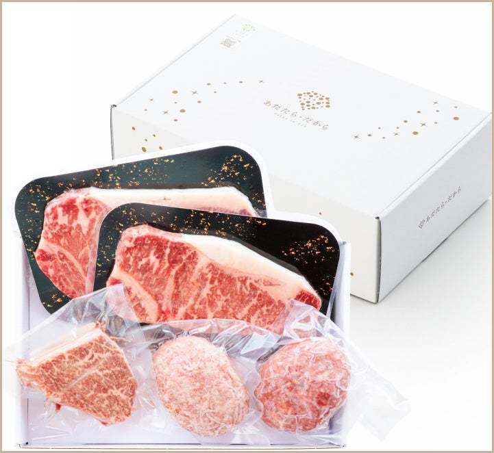 ◆商品内容:シャトーブリアンステーキ100g×1・サーロインステーキ150g×2・ハンバーグ150g×2