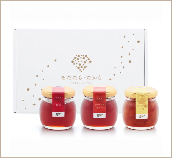 羽山高原で育てられた「紅玉」「シャイニーガール」「トキ」の3種のりんごを使った”あだたら・だから”だけの特別なジャムセットです。
