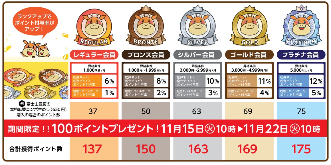 ※松屋モバイルオーダーは「100ポイントプレゼント」対象外です。