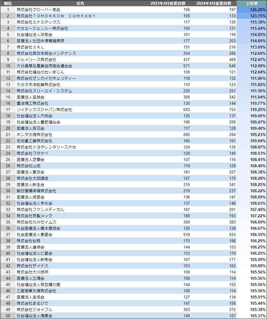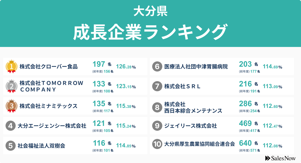 【大分県】成長企業ランキングTOP50!/SalesNow DBレポート