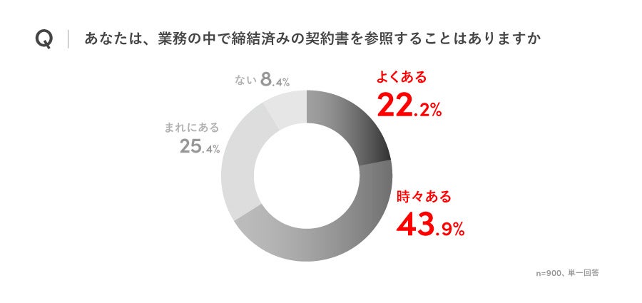 その一方で、過去の契約書を営業活動や商談準備に活用している人は半数近くにのぼり、契約情報をビジネスにおける資産として活用できる可能性を感じました。