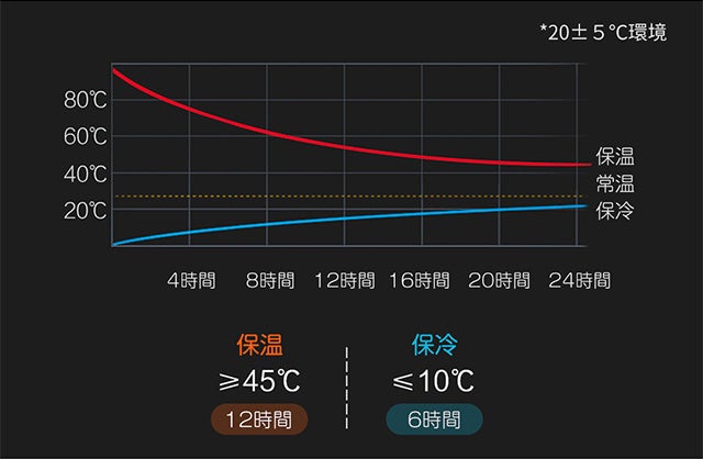 本体はステンレスの2重真空構造を採用しました。しっかりした素材と精密な加工で、優れた保温性を誇ります。45℃だと12時間、10℃だと6時間。