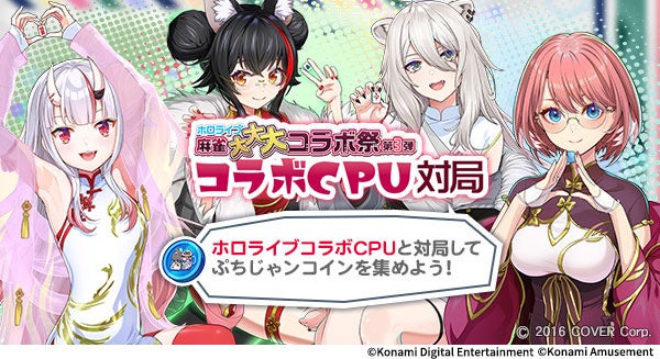 株式会社コナミアミューズメントは、モバイルゲーム『麻雀格闘倶楽部Sp(マージャンファイトクラブエスピー)』にて、カバー株式会社が運営する女性VTuberグループ「ホロライブ」とのコラボイベント「ホロライブ麻雀大大大コラボ祭 第3弾」(以下、第3弾)を3月24日(月)から開催することをお知らせします。