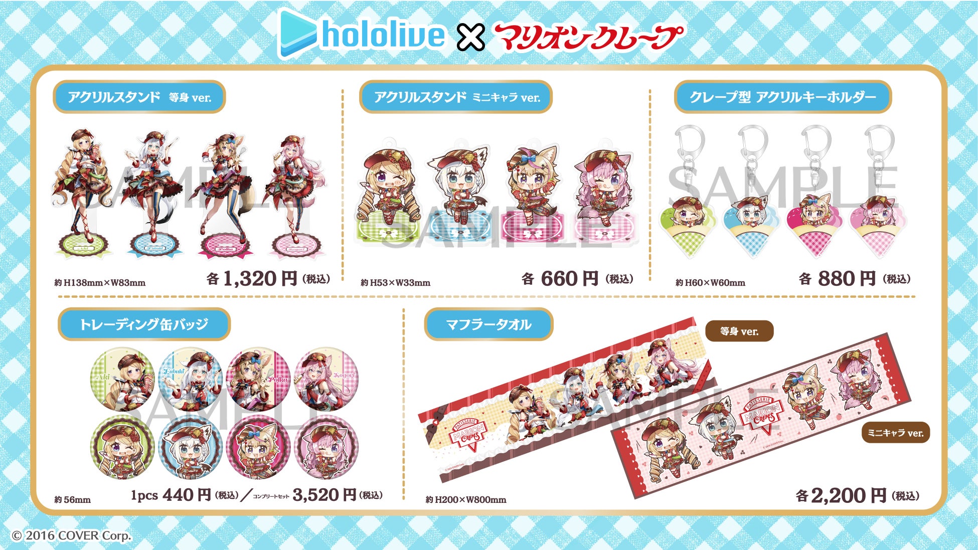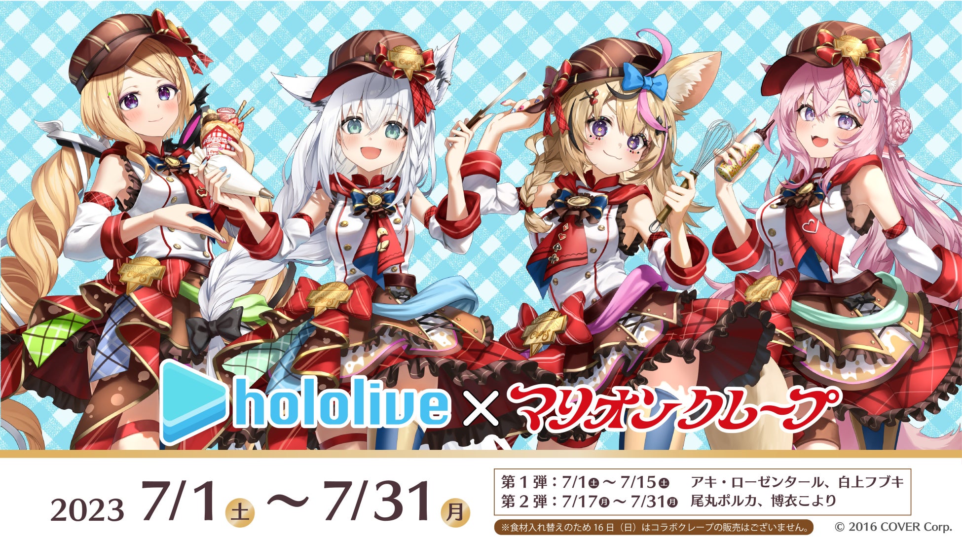 『ホロライブ』×「マリオンクレープ」コラボレーションが開催!描き下ろしイラストを使用した限定オリジナルグッズが登場!さらに、4名のタレント考案の"コラボクレープ"も販売決定!