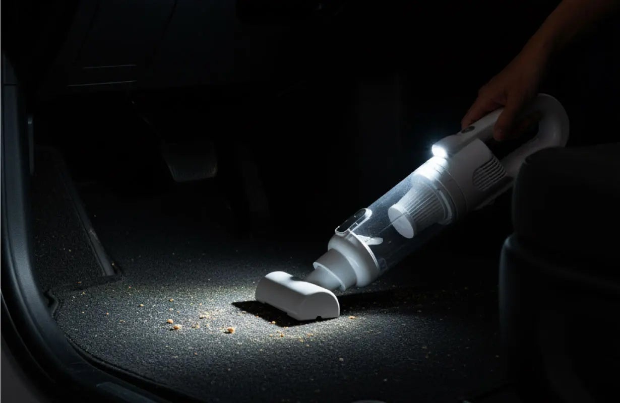 オートLEDライト付きで暗い場所も快適にお掃除できます。