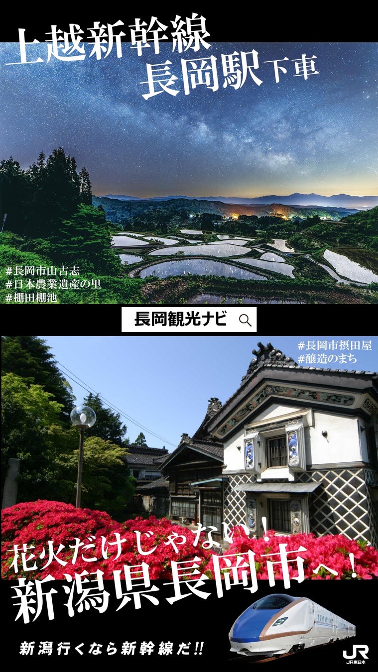 2025年5月19日~6月1日のPRエリアは長岡市です。目でも香りでも楽しめる越後丘陵公園の「香りのばらまつり」、日本農業遺産の里に認定されている山古志エリアの棚田棚池、醸造のまち摂田屋エリアをご紹介。花火だけじゃない!長岡市の魅力をぜひご覧ください。