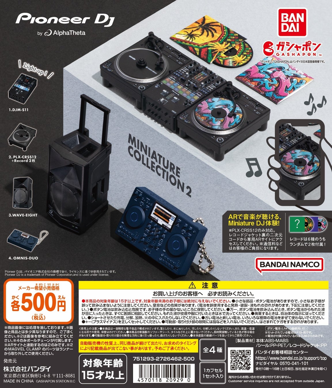 株式会社バンダイ ベンダー事業部(本社:東京都台東区)は、『Pioneer DJ by AlphaTheta Miniature Collection2』(1回500円・税10%込、全4種)として2024年12⽉第4週から順次、全国のガシャポンバンダイオフィシャルショップ、玩具売場、量販店、家電店などに設置されたガシャポン⾃販機シリーズにて発売いたします。