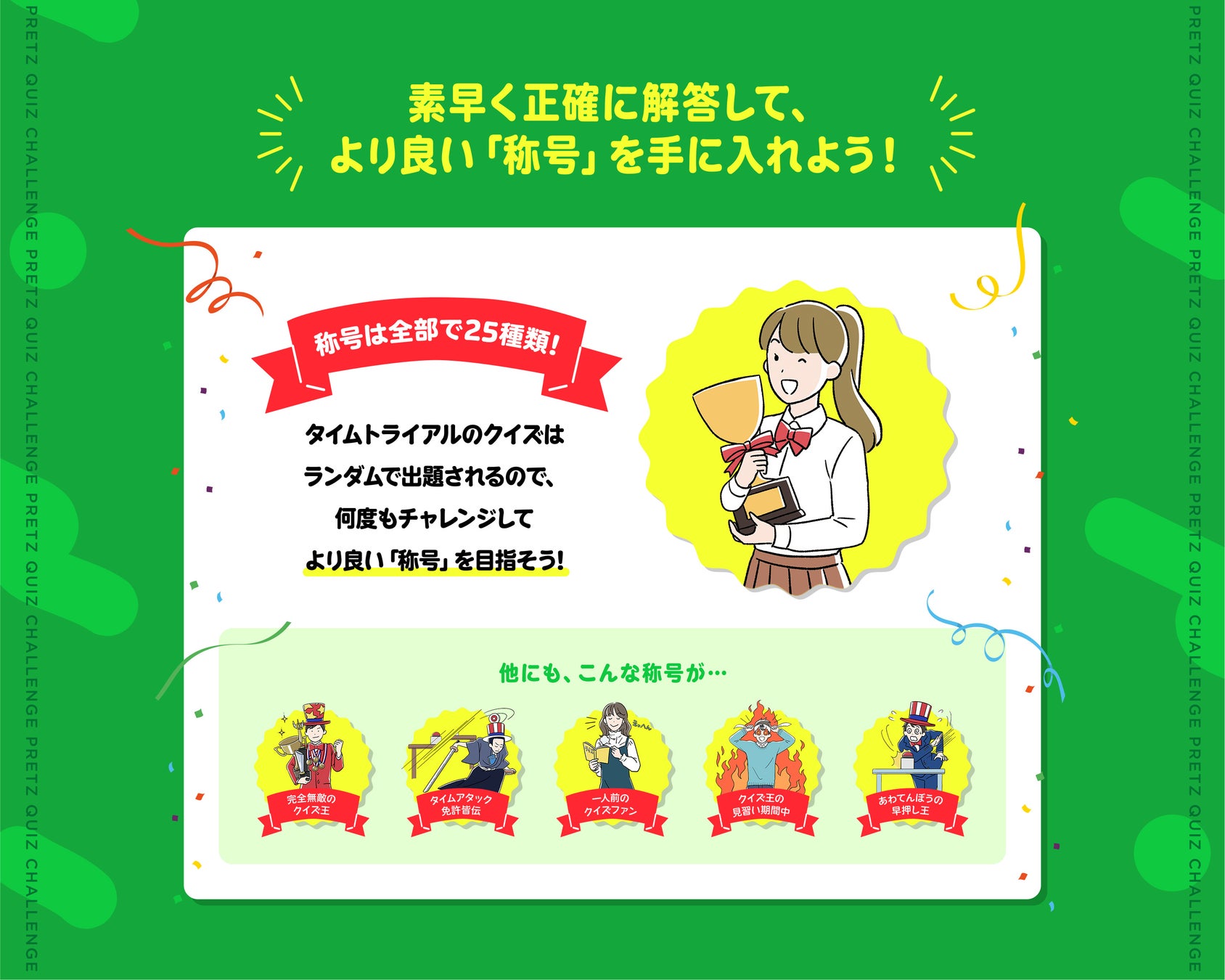 かった時間に応じて、さまざまな楽しい「称号」を手に入れることができます。また同時に、「ポッキー&プリ