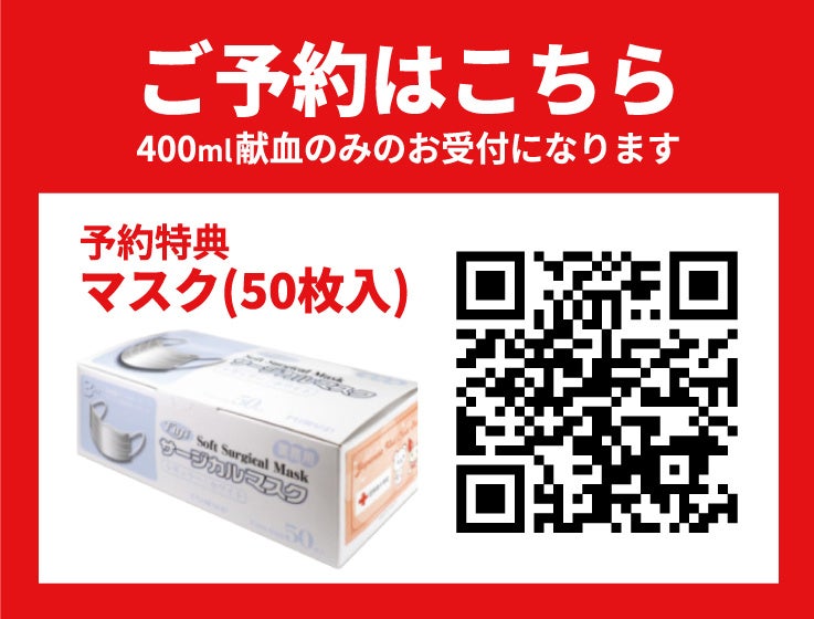 コロナ感染拡大防止の為、事前予約をお願いしております。ご予約の方には予約特典としてサージカルマスク1箱(50枚入)がプレゼントされます。