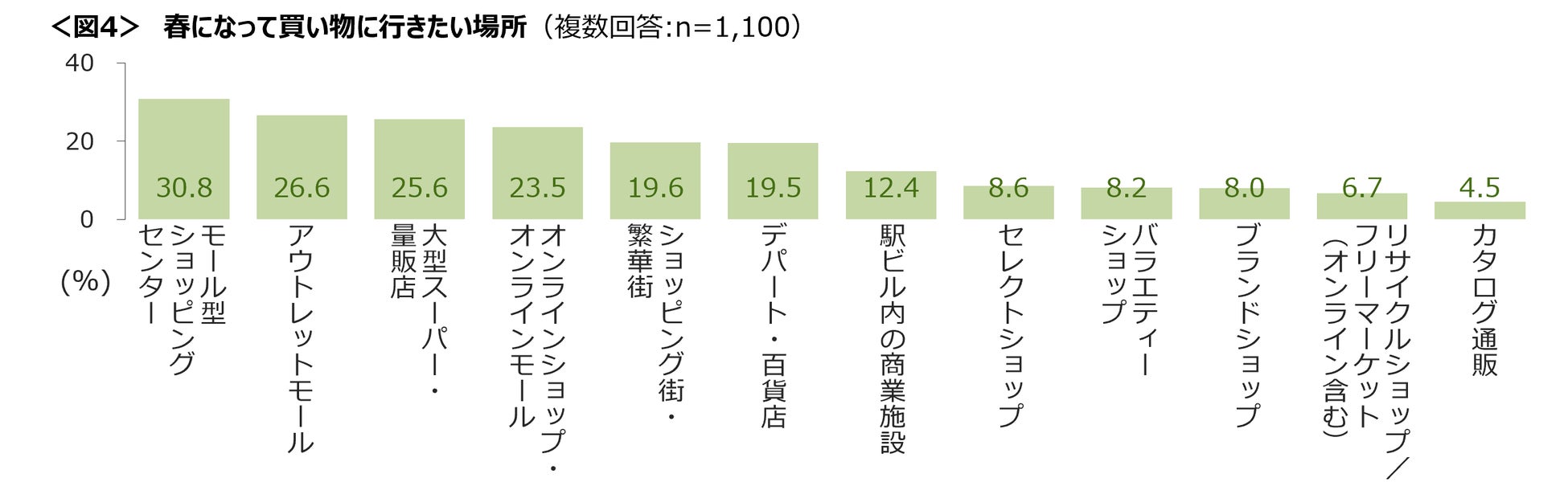 次いで「オンラインショップ・オンラインモール」23.5%と、外出せずに買い物したい人も一定数いる。