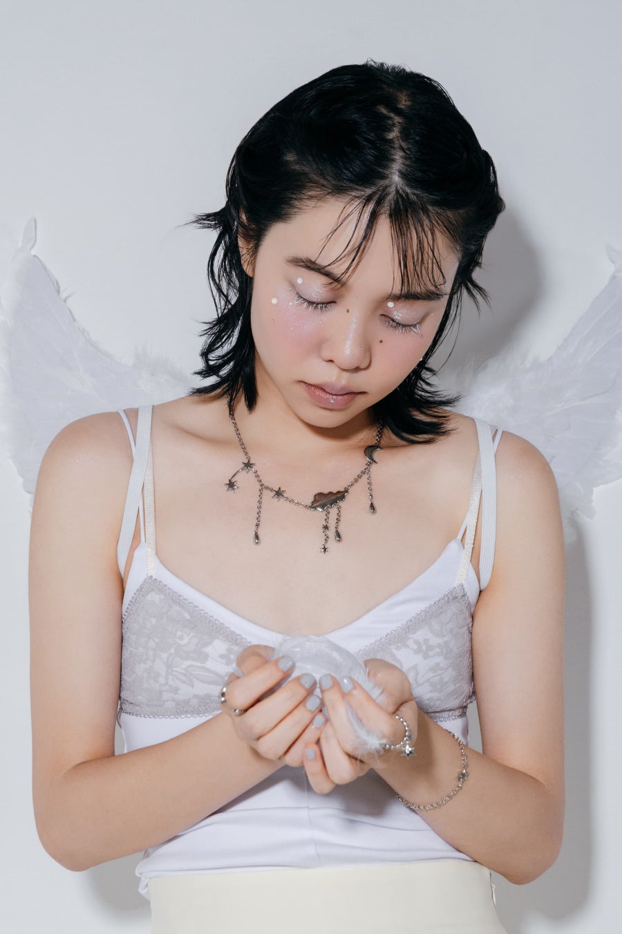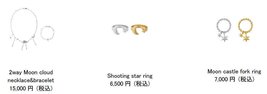 今回のラフォーレPOP UPではmuseumのような空間を制作。新作moon castle collectionを携え、月や雲など、日常にひそむファンタジーをモチーフに、身につける人の感性を解き放つジュエリーを展開。日々忘れてしまいがちな魔法のような瞬間を思い出させてくれる、物語性あふれるデザインが特徴です。