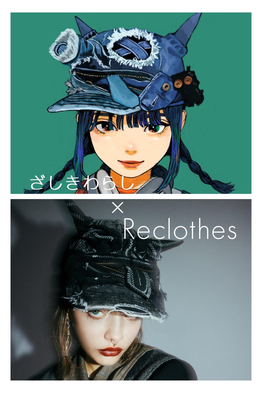 Reclothesの人気アイテム「モンスターキャップ」をイラストレーター・ざしきわらしがイラスト化。Reclothesが手掛けるリメイク服の中にオリジナル生地を混ぜ込んだ世界に1点だけの推しアイテムをお届けします。