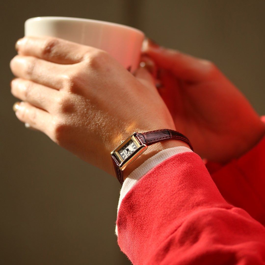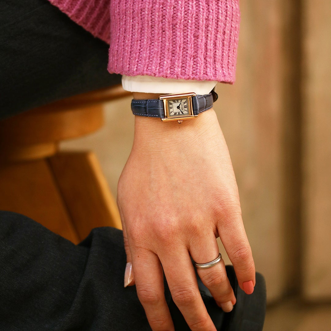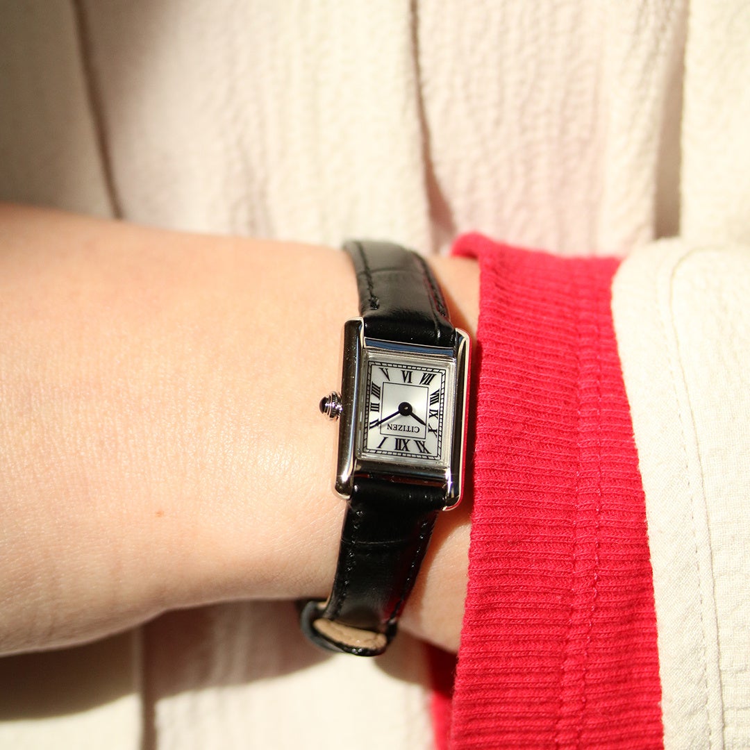 極小のエコ・ドライブムーブメントを搭載、サイドに丸みを持たせたケースが、洗練された優しさを醸し出します。ローマ数字で統一したインデックスと型押しを施した牛革バンドが、落ち着きのあるクラシカルな表情を際立たせています。少し大きめのりゅうずが小ぶりなケースにアクセントを添えてヴィンテージ調の雰囲気を漂わせております。