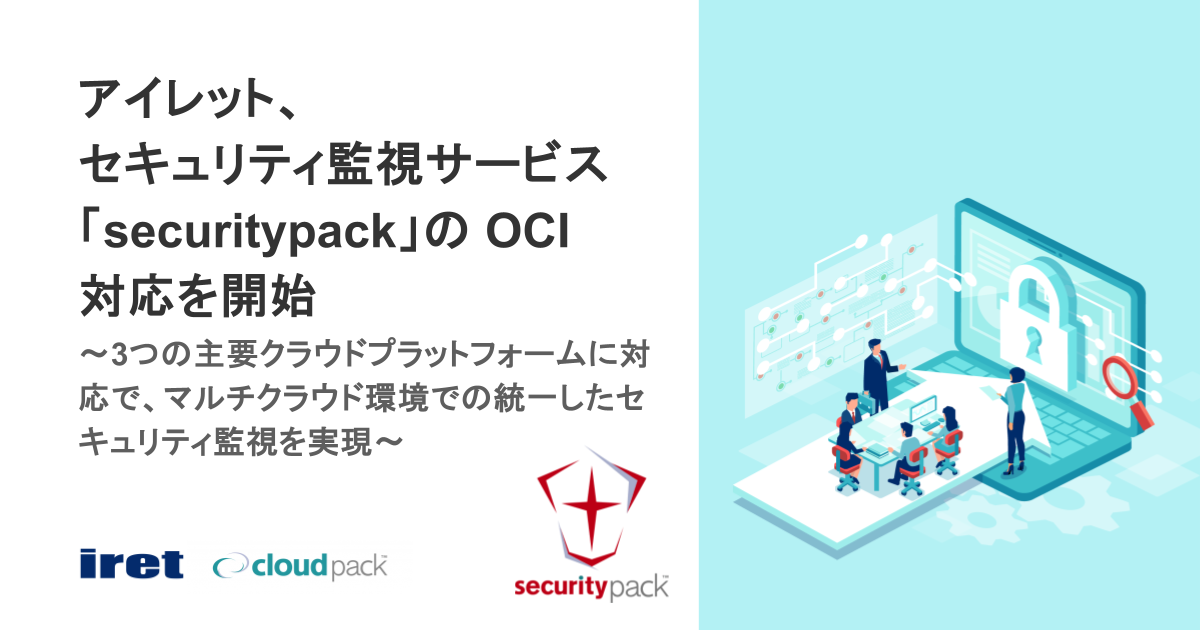 システム・アプリケーションの開発、グラフィック・UI/UX デザイン制作からインフラの構築・運用までをワンストップで提供するアイレット株式会社(本社:東京都港区、代表取締役社長:岩永充正、以下 アイレット)は、クラウド環境におけるセキュリティ監視サービス「securitypack(セキュリティパック)」が Oracle Cloud Infrastructure(以下、OCI)に対応したことを発表します。これにより、すでに対応している AWS や Google Cloud、そして OCI の各クラウドプラットフォームにおいて統一されたセキュリティ監視サービスを提供する体制が確立され、マルチクラウドを活用するお客様においても、一貫したセキュリティポリシーのもとで24時間365日の高度なセキュリティ監視が可能となります。