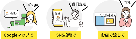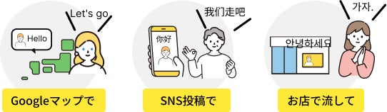 訪日外国人旅行客が増え、インバウンド対策の必要性が高まる中、中小企業の方々がより手軽に旅行客に販促活動ができるよう、AI翻訳を活用した低価格の他言語化サービスを開発しました。日本語で動画制作後、AI翻訳した内容に対し専門スタッフが違和感のある表現を修正することで、自然な言語表現かつ、自動音声などと異なる滑らかなナレーション音声の生成やキャプションをつけた動画をご提供できることが特長です。