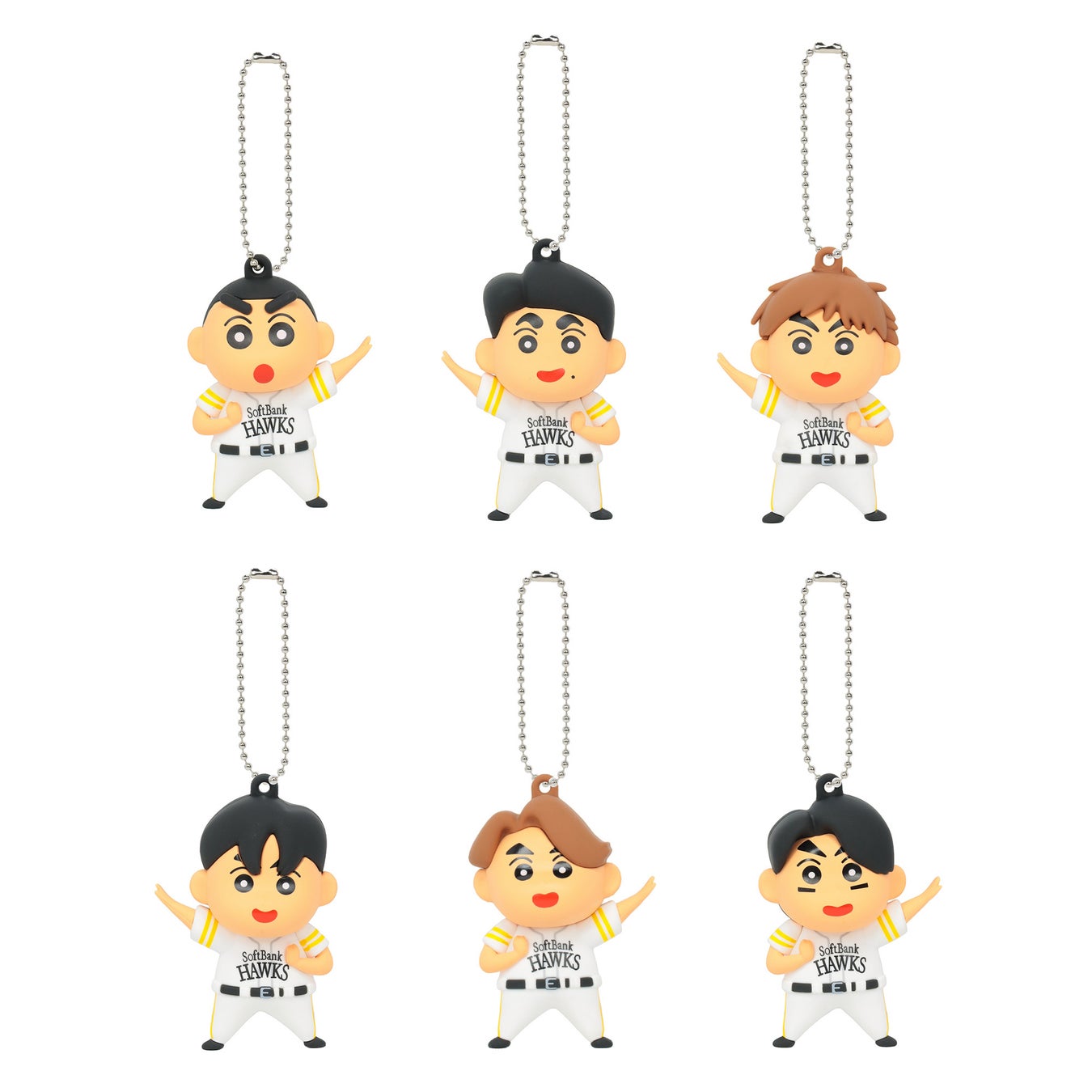 ポーチやキーホルダー等の雑貨も豊富にラインナップ!ホークス選手やしんちゃんがフィギュアになったラバーマスコットキーチェーンは、コラボ限定のレアアイテムです♪