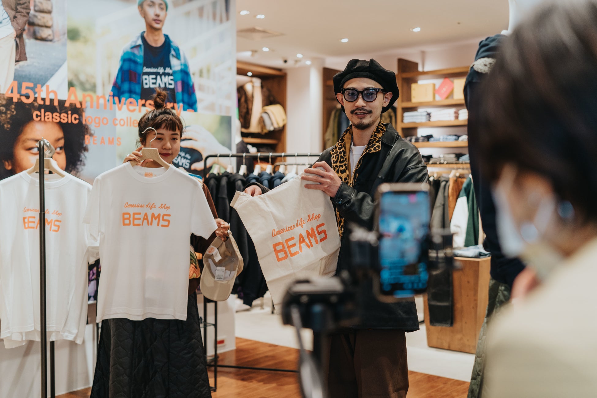 12月11日(土)、台中の中心地にある「新光三越台中中港店」の3階にオープンした「ビームス新光三越中港」は、ビームス業態のカジュアルレーベルを扱う店舗で、メンズ、ウィメンズのオリジナル品やセレクト品、雑貨類などを品揃えます。店内にはプロジェクターを備えた多用途のイベントスペースを設けており、公開インスタライブや、店内ポップアップショップ、コラボレーションの発表スペースといった利用を想定します。今回、イベントスペースでは、オープンにあわせて今年BEAMSの創業45周年を記念して発表した「BEAMS 45th Classic Logo Products」のアイテムを集積し、台中のお客様に1976年創業の日本のセレクトショップであるビームスを認知していただくことを狙います。