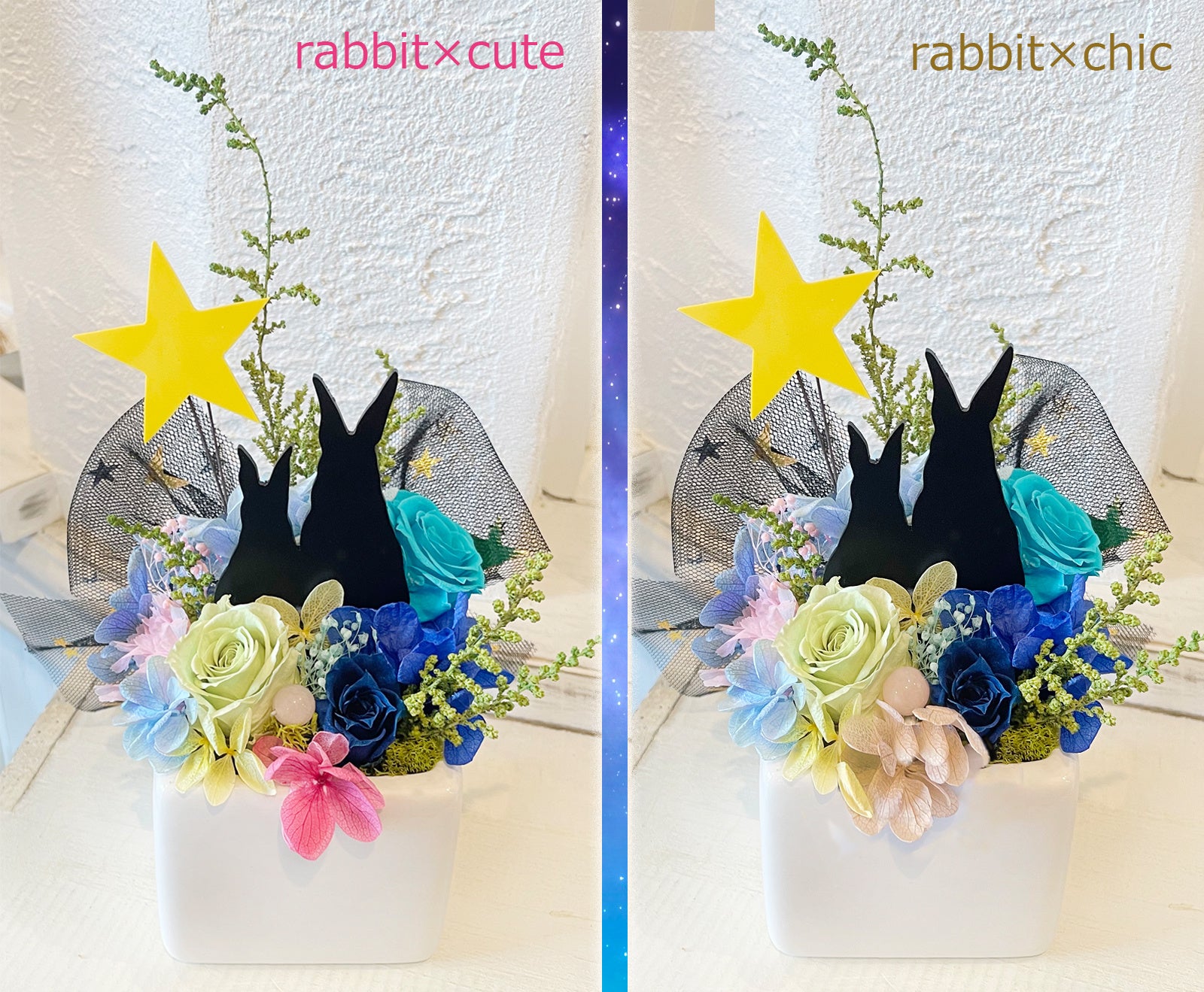 4匹の猫と1羽のうさぎと暮らす自身の経験から、愛するペットとずっと一緒にいられるように願いをかけるフラワーアレンジメントは作れないか、という想いから企画。「犬」「猫」「うさぎ」の3種類から選べます。