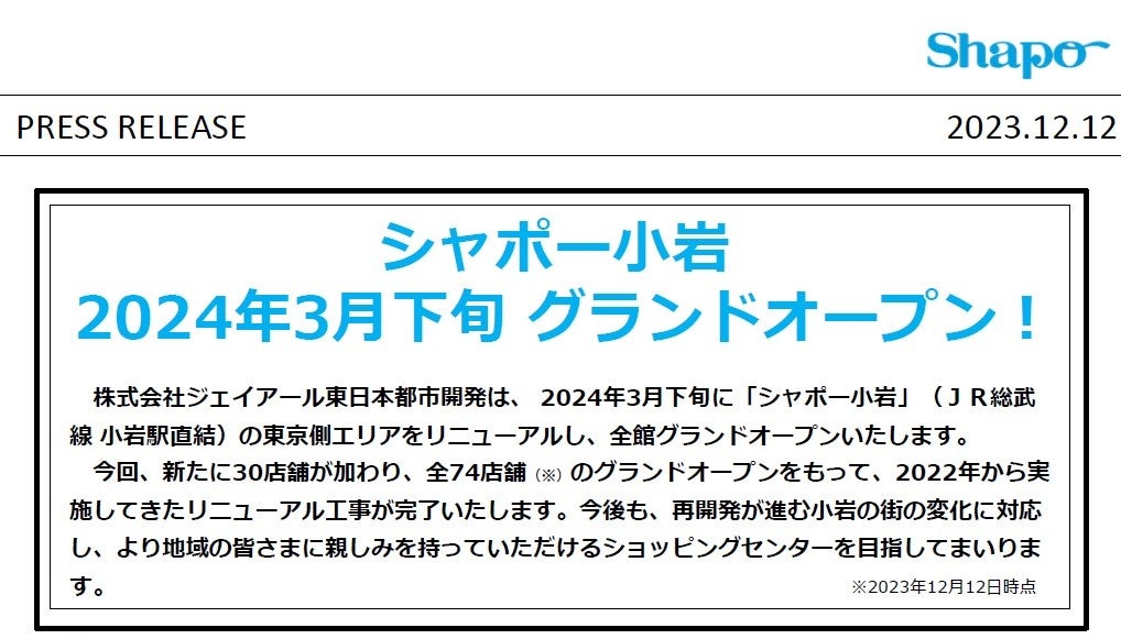 シャポー小岩 2024年3月下旬 グランドオープン!