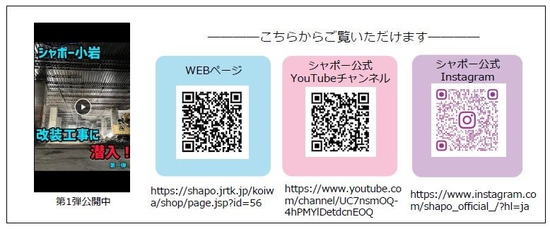 シャポー小岩のリニューアル工事のウラ側を撮影した動画を、特設ページやシャポー公式YouTubeチャンネル・シャポー公式Instagramにて紹介しています。