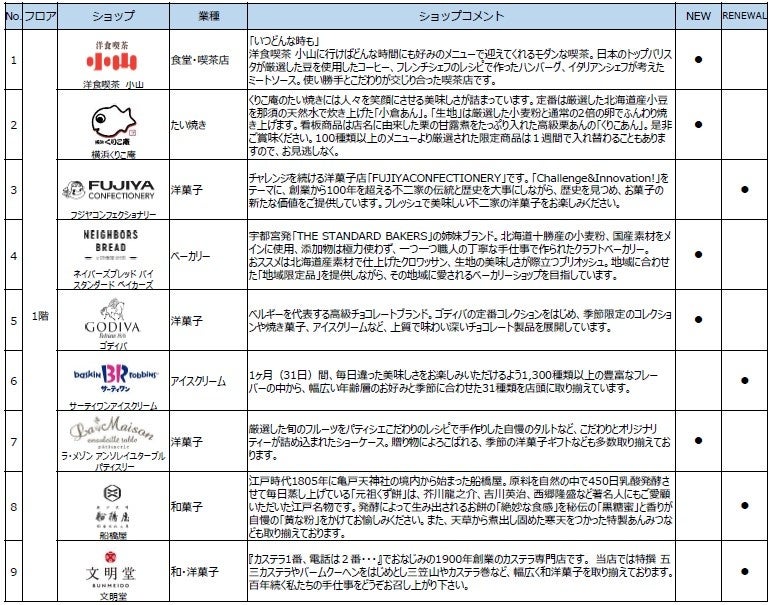 リニューアル前に分散していたスイーツショップを東京側エリア1階に集積します。地域の皆さまからご要望いただいていた、洋菓子・カフェ業種を増やし、思わずシェアしたくなるギフトや、ほっと一息つく場所など、特別な日にも日々の生活にも彩りを加えます。またスイーツゾーンの先は、レディスファッション・ファストフードなど毎日ふらっと立ち寄りたくなる、楽しいお買いもの道が続きます。