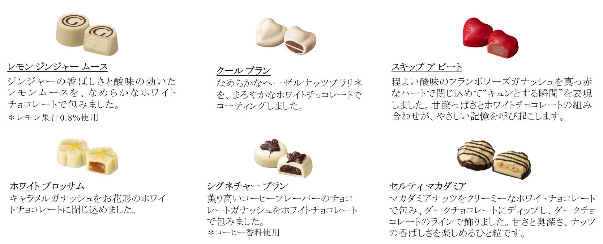 ハートのモチーフがさりげなくデザインされたシンプルなパッケージに、ベルギーの伝統が息づく、美しいホワイトチョコレートなどを詰め合わせました。“ピュアな気持ち”を込めて贈りたい、季節限定のコレクションです。