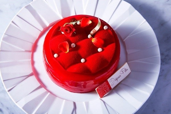 エレガントな香りのシャンパンジュレと軽い食感のイチゴムースが組み合わさったケーキです。