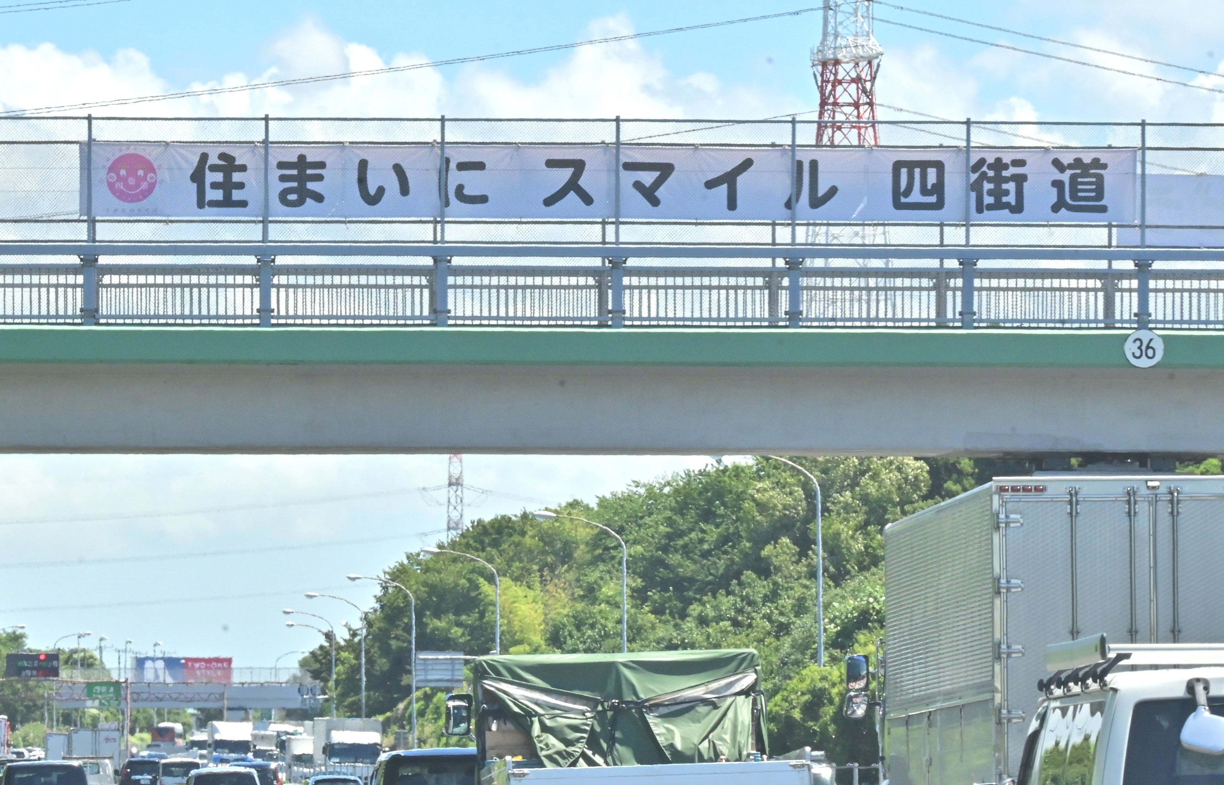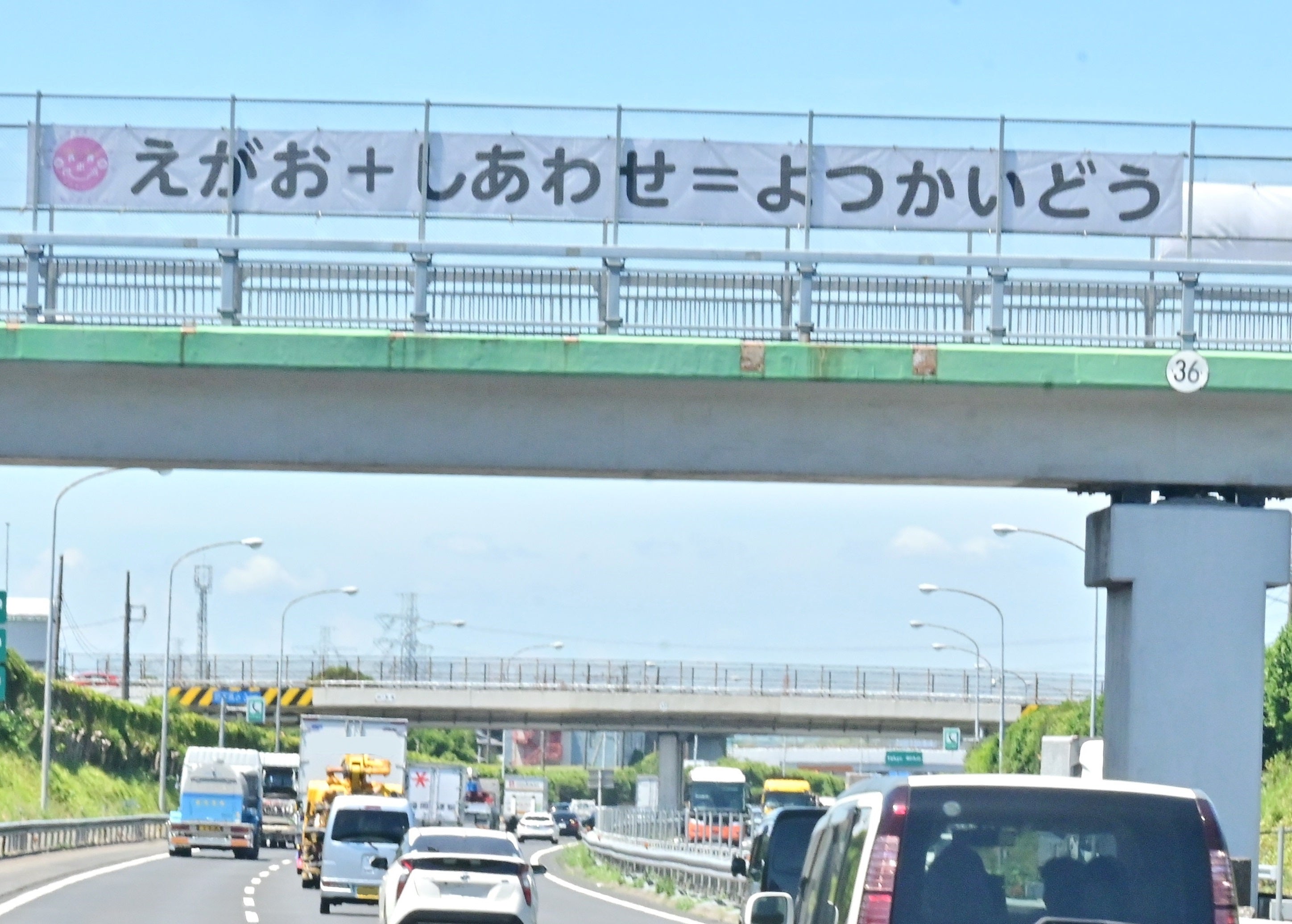 四街道市では昨年度に引き続き、東関東自動車道を利用する方に本市をPRするため、高速道路を跨ぐ陸橋にPR横断幕を掲出しました。