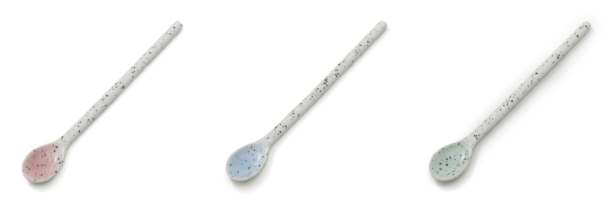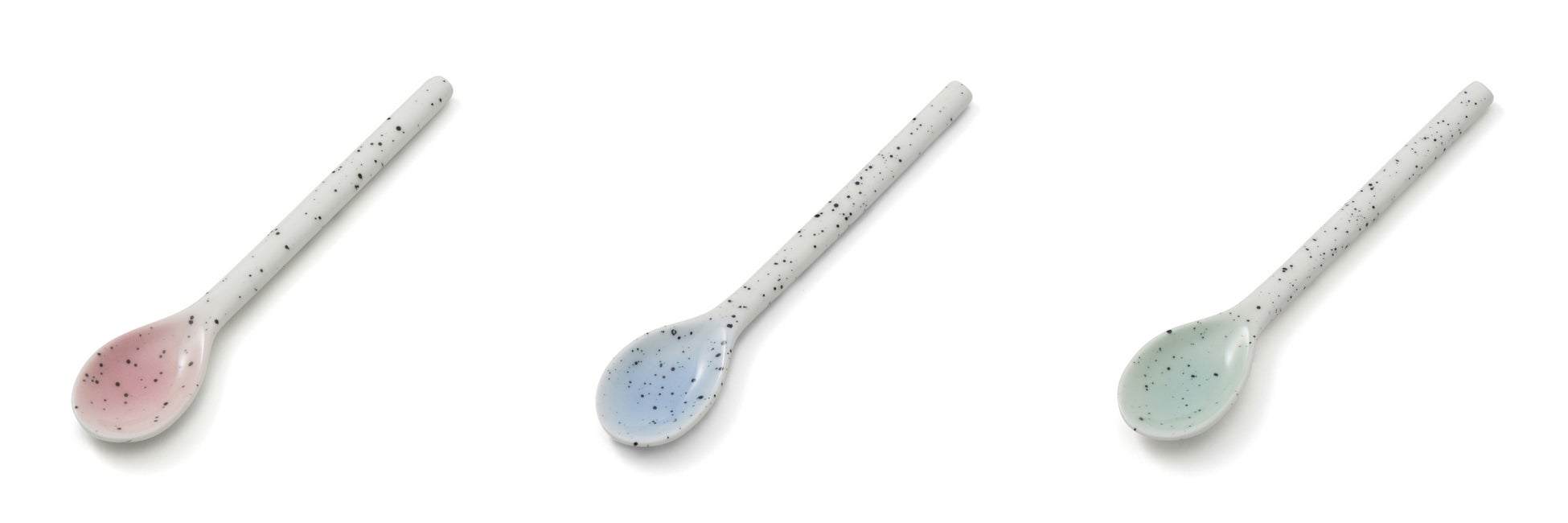 パフェタンブラーに合わせたカラー展開のパフェスプーンとデザートスプーンです。スプラッター柄をあしらい、バニラアイスにパフェソースがかかったようなデザインが特徴です。
