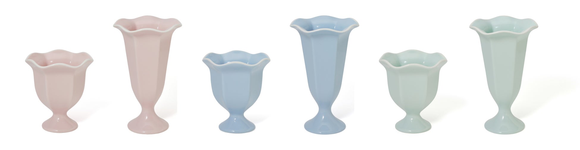 バイカラーのスカラップデザインで可愛らしく仕上げたセラミックのパフェタンブラーです。甘くて涼し気なパステルカラーの3色展開です。Sサイズはアイスにビスケットやジャムを入れて、いつもより少しリッチなデザートタイムを楽しみたい方に。Mサイズはコーンフレークやフルーツなども入れて本格的なパフェを楽しみたい方にピッタリのサイズです。