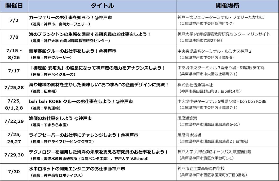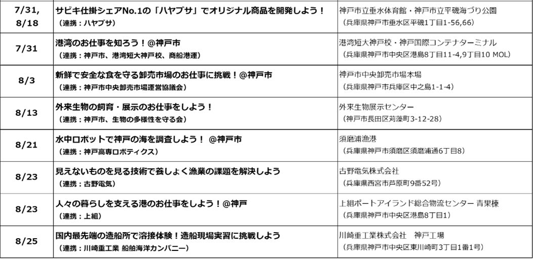 ※最新情報は、公式サイト( https://iko-yo.net/topics/kodomowork_kobe )をご覧ください。